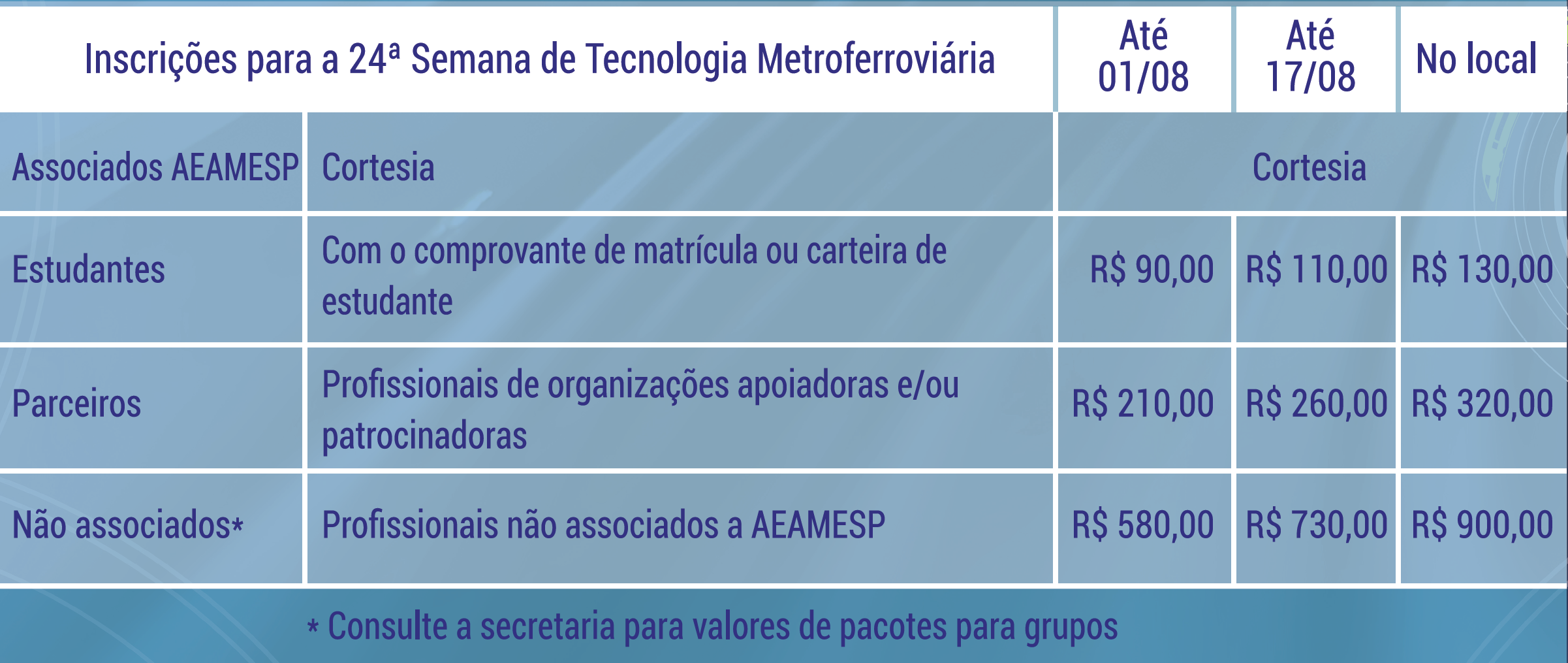 Associados AEAMESP em dia com sua contribuição não é necessário realizar inscrição, basta comparecer à recepção do evento para retirar suas credenciais.